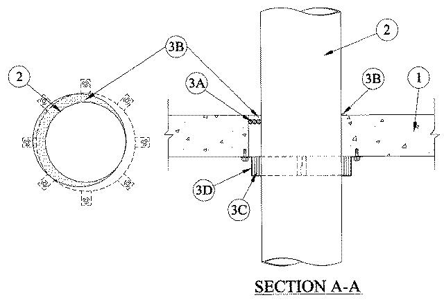 1.Floor or Wall Assembly — Min 4-1/2 in. thick reinforced lightweight or normal weight (100-150 pcf) concrete. Wall may also be constructed of any UL Classified Concrete Blocks*. Max diam of opening is 10 in.