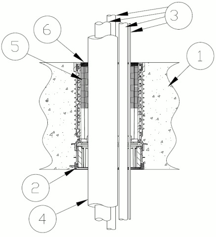 3.Through Penetrants — Pipes, tubing or cable to be bundled within the opening. The space between penetrants and the space between the penetrants and the inside of the firestop device (Item 2) at top of floor shall be min 1/4 in. (6 mm). Penetrants to be rigidly supported on both sides of floor assembly. The following types and sizes of penetrants may be used:A.Metallic Pipes — Max four of the following types and sizes of metallic pipe or tubing may be used:1.Copper Tubing — Nom 3/4 in. (19 mm) diam (or smaller) Type M (or heavier) copper tubing.2.Copper Pipe — Nom 3/4 in. (19 mm) diam (or smaller) Regular (or heavier) copper pipe.B.Polyvinyl Chloride (PVC) Pipe — A max of one Nom 1 in. (25 mm) diam (or smaller) Schedule 40 solid core PVC pipe for use in closed (process or supply) piping systems.B1.Polyvinyl Chloride (PVC) Pipe — As an alternate to Item B, Max of one Nom 1 in. (25 mm) diam (or smaller) solid or cellular core Schedule 40 polyvinyl chloride (PVC) pipe.