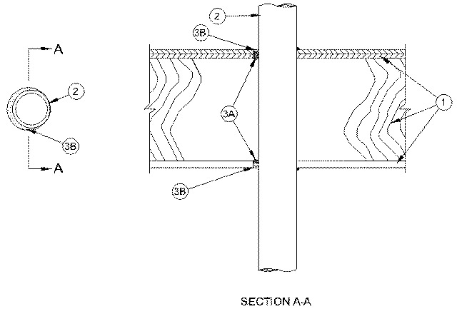 2.Through Penetrants — One nonmetallic pipe to be installed either concentrically or eccentrically within the firestop system. Diam of the circular opening in flooring, and top and sole plates of chase wall is 5/8 to 7/8 in. (16 to 22 mm) larger than the actual diam of the pipe such that the annular space is min 0 in. (point contact) to max 7/8 in. (22 mm). Pipe to be rigidly supported on both sides of floor-ceiling assembly. The following types and sizes of nonmetallic pipes may be used: