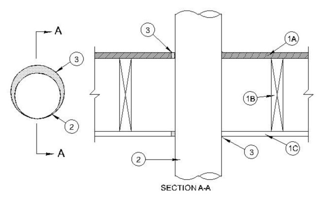 2.Through Penetrants — Nom 6 in. (152 mm) diam (or smaller) min 30 Ga. duct to be installed concentrically or eccentrically within the firestop system. Duct to be rigidly supported on both sides of floor assembly.