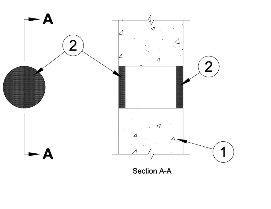 2.Fill, Void or Cavity Material* — Sealant — Min 5/8 in. (16 mm) thickness of sealant applied within annulus, flush with both surfaces of wall.
