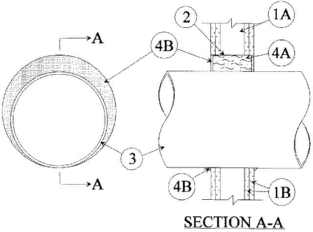 2.Steel Wire Mesh — Cylindrical sleeve fabricated from No. 8 steel wire mesh and having a min 1 in. lap along the longitudinal seam. Steel wire mesh to be centered and formed to fit periphery of through opening. Length of steel wire mesh to be equal to the thickness of the wall.